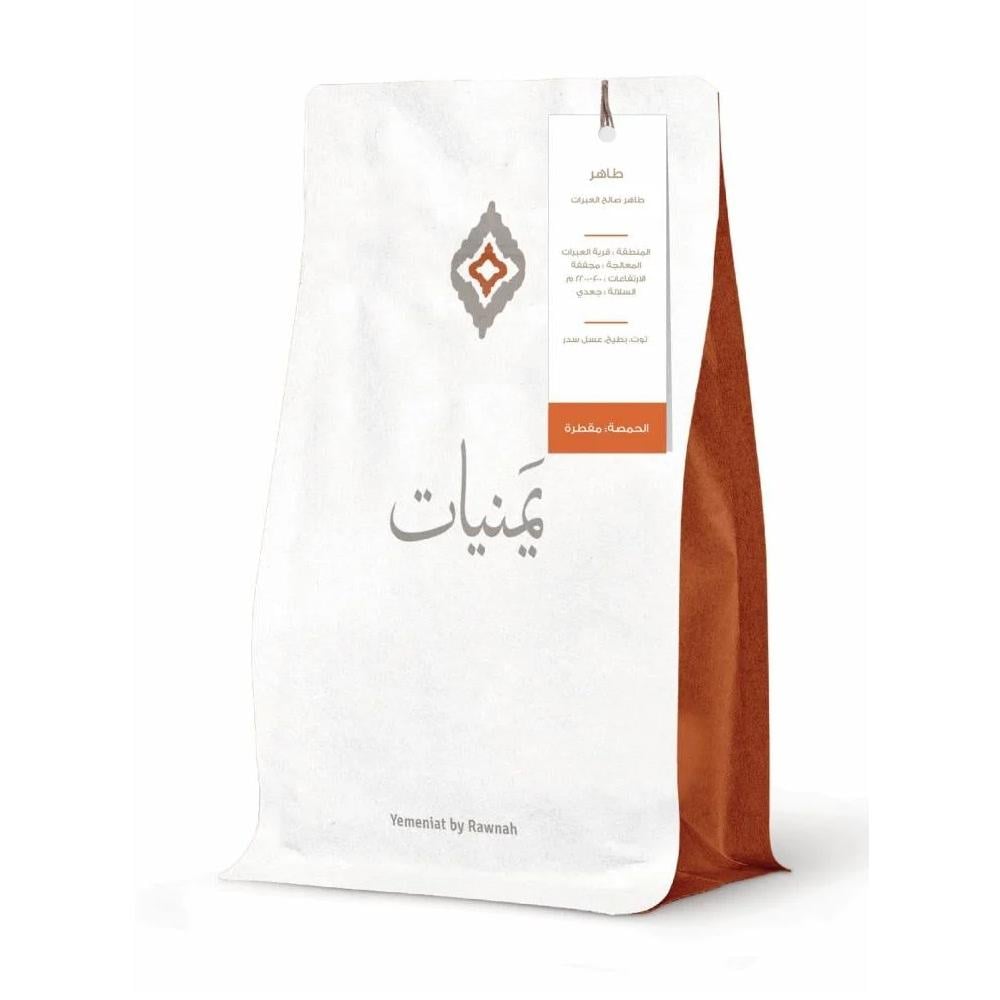 من أعالي جبال قرية العبرات، وعلى ارتفاعات تتراوح بين 2000 و2200 متر، يأتيك محصول "طاهر" من السلالة اليمنية الأصيلة جعدي. تمت معالجته بالتجفيف الطبيعي ليقدّم لك كوب قهوة متوازن يجمع بين الحلاوة والانتعاش بنعومة تليق بالقهوة المختصة.