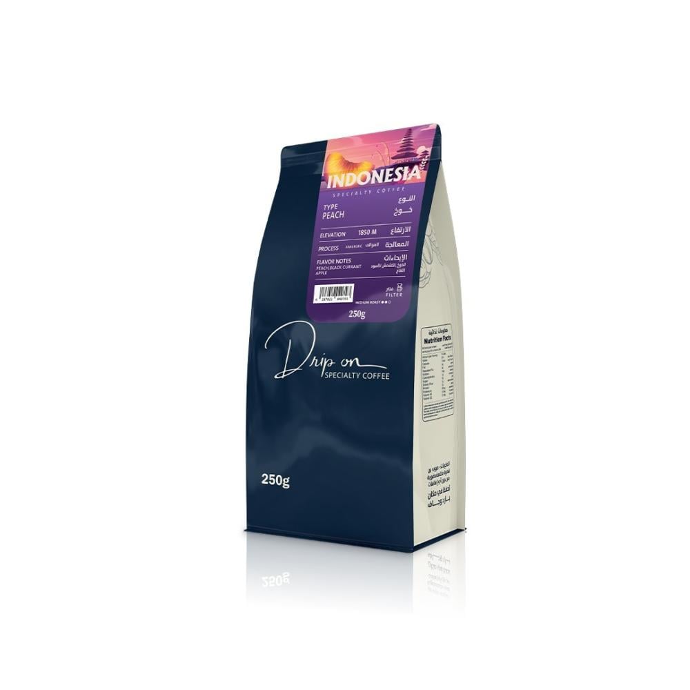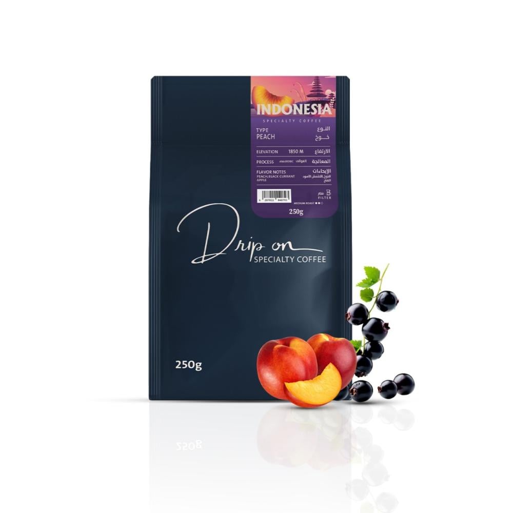 قهوة خوخ إندونيسيا هي اختيارك الأمثل لتجربة قهوة ناعمة بطابع فاكهي أنيق يجمع بين الأصالة الإندونيسية والحلاوة المتوازنة في كل رشفة.
