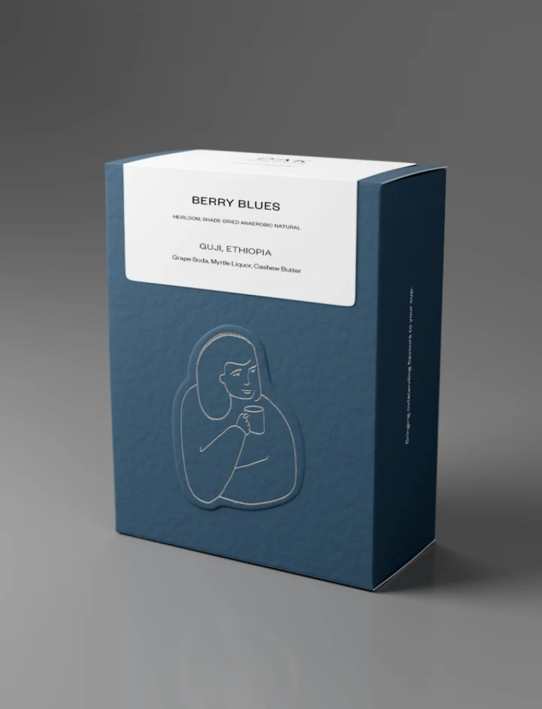 استمتع برحلة نكهة استثنائية مع قهوة بيري بلوز من منطقة قوجي الإثيوبية، المعالجة بالتجفيف اللاهوائي المظلل (Shade-Dried Anaerobic Natural) من مزارع المميز إساياس بريسّو.