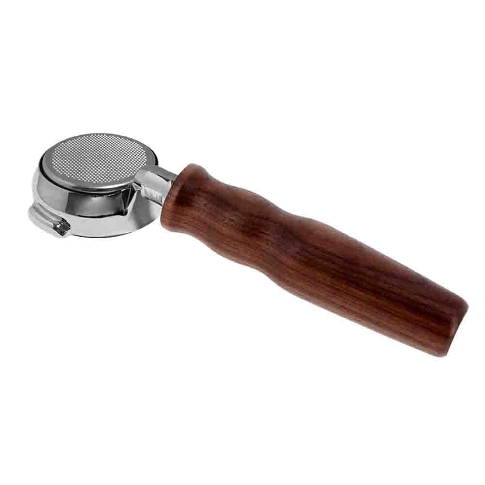 بورتافلتر مكشوف متوافق مع ماكينات FAEMA، Brasilia B61، Aurora-Brugnetti، Casadio، وFuturmat. يأتي بسلة استخلاص سعة 21 جرام ومقبض أنيق من خشب الجوز الطبيعي. مثالي لتحسين جودة الاستخلاص ومراقبة تدفق الإسبريسو بدقة.