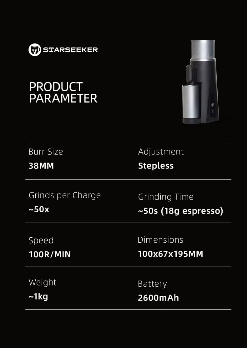 ⚡ مطحنة القهوة المحمولة STARSEEKER EDGEmini – كهربائية بمطاحن مخروطية 38 مم