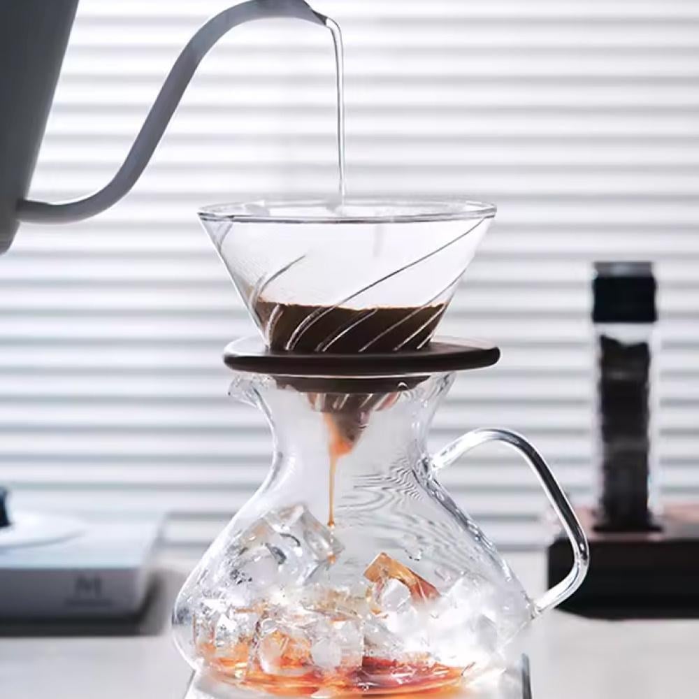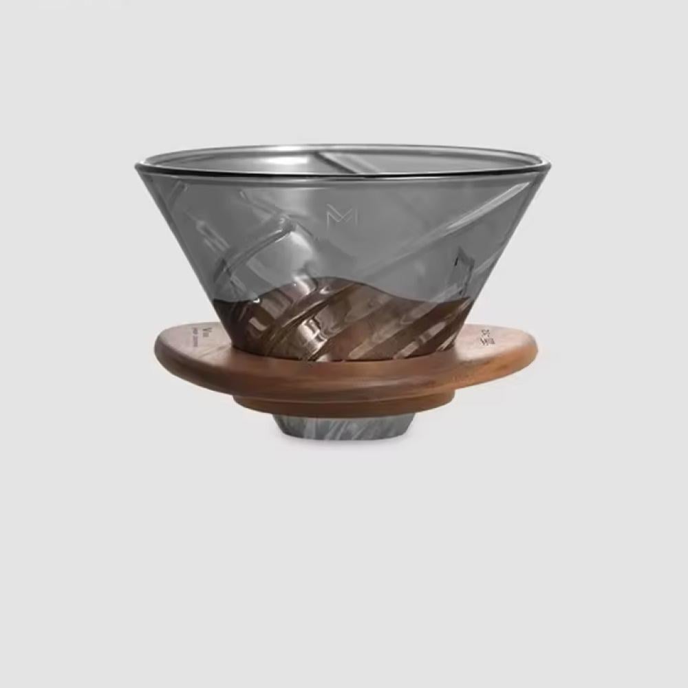 قمع تقطير V60 زجاجي بتصميم حلزوني بقاعدة خشب الجوز من MUVNA