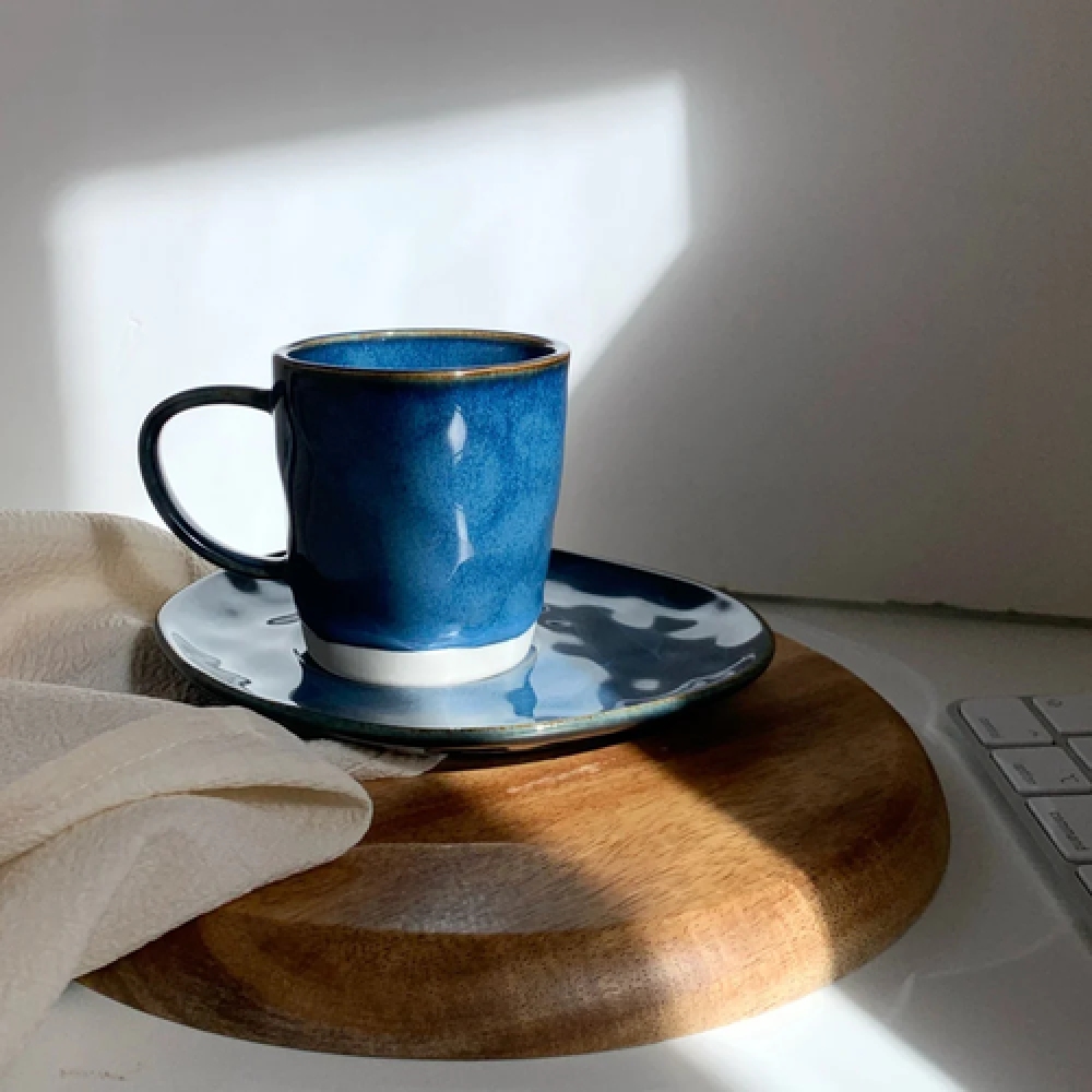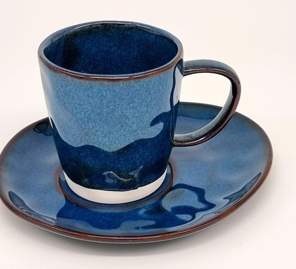 كوب سيراميك أنيق بسعة 100 مل بلون أزرق نيلي يأتي مع صحن مطابق. مثالي لتقديم القهوة مثل الإسبريسو يتميز بتصميم عصري ولمسة فاخرة، مما يجعله إضافة رائعة لمائدتك سواء للاستخدام اليومي أو المناسبات الخاصة .