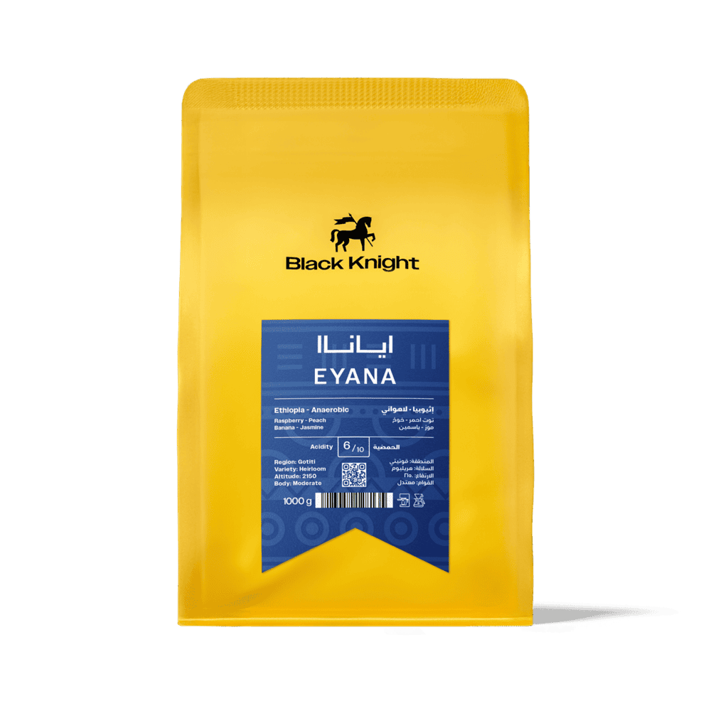 استمتع بتجربة فريدة من قلب الهضاب الإثيوبية مع قهوة إيانـا (EYANA) من بلاك نايت، المزروعة في منطقة قوتيتي على ارتفاع 2150 متر. معالجة لاهوائية تمنح القهوة طابعًا غنيًا ومعقدًا يبرز النكهات بوضوح وتوازن.